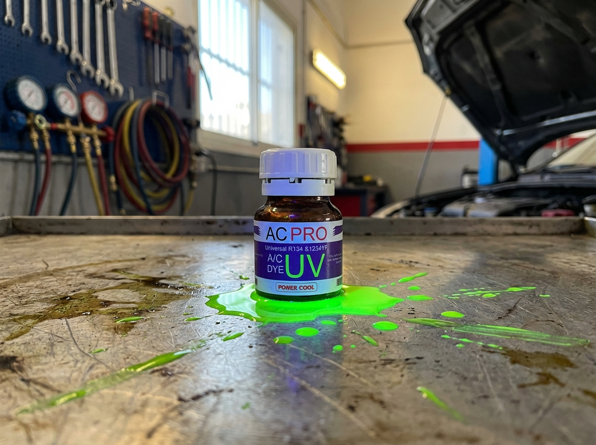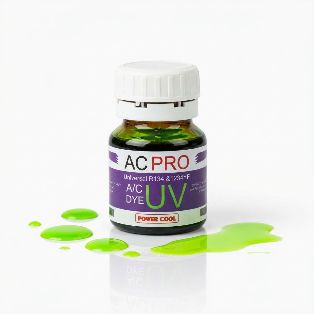 مایع نشتیاب AC PRO UV Dye یک ابزار حرفهای و ضروری برای نشتیابی دقیق سیستم کولر خودرو است. این محصول با ترکیب رنگ فلورسنت سبز، پس از تزریق به سیستم A/C، همراه با گاز و روغن در مدار گردش میکند و در صورت وجود هرگونه نشتی، محل آن را بهصورت سبز درخشان مشخص مینماید.